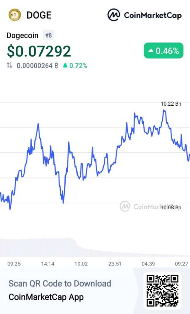 Investor Interest: The market cap suggests that Dogecoin has attracted a considerable amount of investor interest and participation. It indicates that there is sufficient liquidity in the market, making it easier for investors to buy and sell Dogecoin tokens.