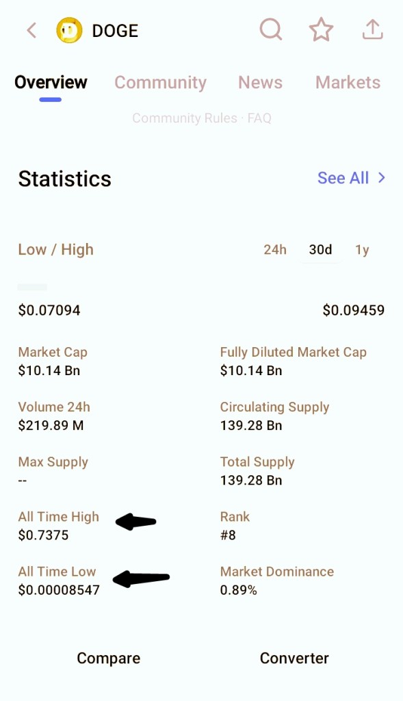 As seen on coin market cap, Dogecoin’s circulating supply is 139.28 Bn. This says a lot.