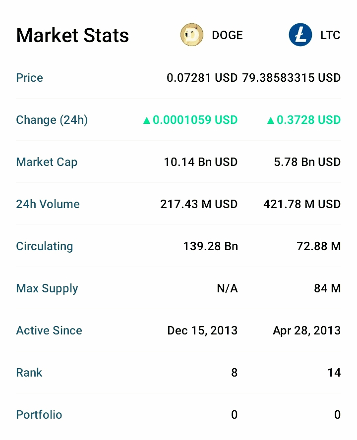 COMPARATIVE ANALYSIS OF DOGECOIN AND LITECOIN ( as of 10th May, 2023)